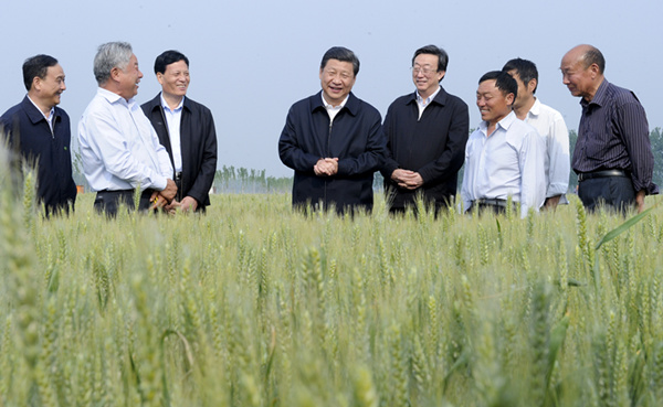 2014年5月9日下午,习近平在尉氏县张市镇高标准粮田察看小麦长势。