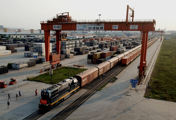 2018年7月18日,一列中欧班列(郑州)满载着货物驶出郑州铁路集装箱中心站。当日,中欧班列(郑州)启动运行满5周年。