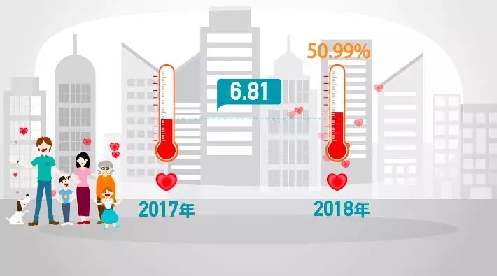 大调查发现,2018年超过半数的受访者感觉生活幸福(50.99%),38.45%的受访者感觉一般,仅有10.57%的人感觉不幸福。大调查发现,2018年幸福感较前一年提升了6.81个百分点。回看大调查12年幸福曲线,这是自2009年以来,中国百姓整体幸福感最高的一年。