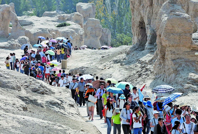 交河故城游人如织。旅游业如今已成为吐鲁番市支柱产业。闫俊/摄