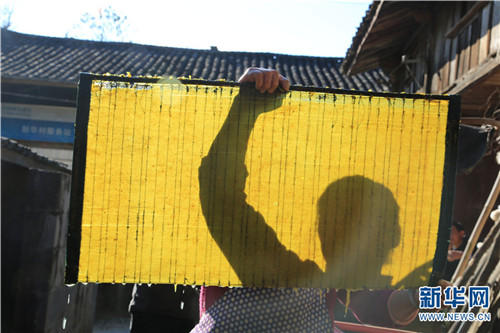 据悉,界头镇至今仍有20多户人家完好地保存着这一古老的纯手工抄纸工艺。此项工艺既为抄纸人家增加了经济收入,也成为文化传承的一道靓丽风景。