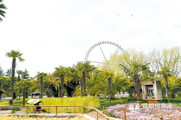 据介绍,大观公园西区风大、风向好,周围以花海为主,特别是春天,只要天气好,每天都有市民来到公园放风筝。为了给市民一个放飞的场地,同时规范公园的安全管理,该公园专门“量身打造”了风筝广场。风筝广场占地约800平方米,是昆明少有的专供风筝放飞的运动场所。