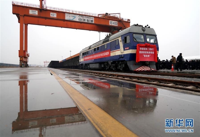 3月2日,中欧班列(郑州)“菜鸟号”列车在中铁联集郑州中心站等候发车。新华社 记者李安/摄