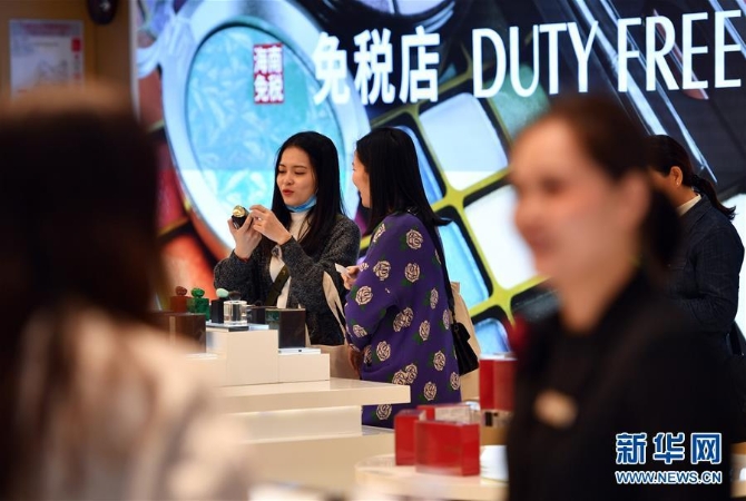 1月19日,顾客在海口免税店选购商品。新华社 记者郭程/摄