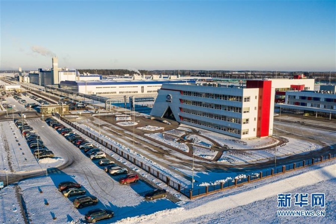 这是在白俄罗斯首都明斯克东北方向50公里处拍摄的白俄罗斯吉利全散件汽车制造厂(2018年11月30日摄)。新华社 记者张若玄/摄