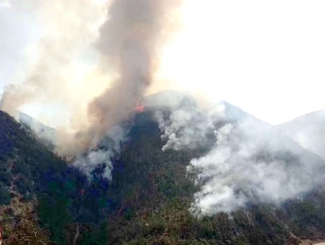 截至17日12时05分共投入700余人参与扑救,南方航空护林总站丽江站派出一架“小松鼠”直升机已到火场勘察火情。