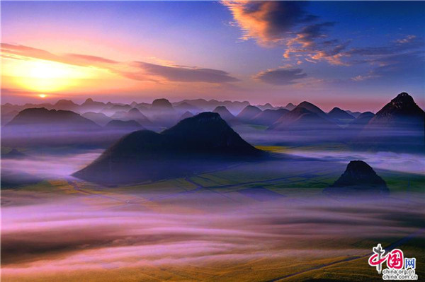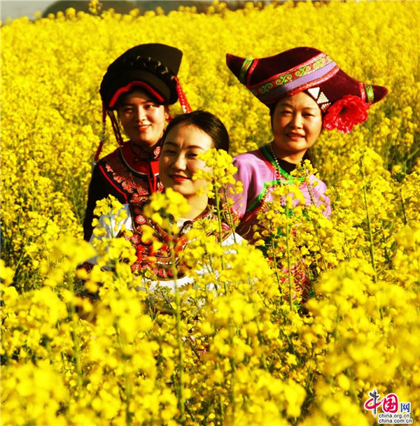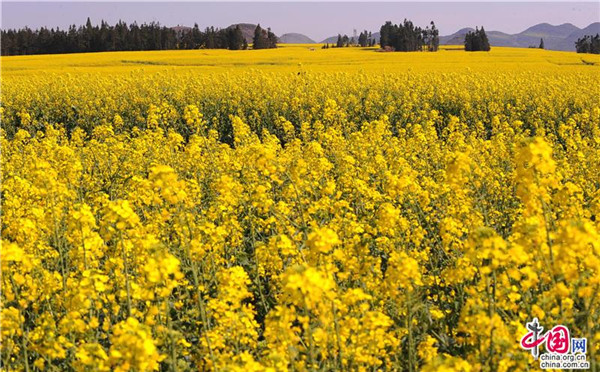 “菜花一层层金,瀑布一片片银,金花银瀑好地方,名字叫罗平。多依河染出风情画呀,小三峡有那大风景那,十万山下三江流哟,雄鸡一唱三省听,啊,哎嗨依儿哟,哎嗨依得儿哟……油是这一方香,蜜是这一方醇,飘香流蜜好地方,名字叫罗平……”云南省罗平县的县歌《金花银瀑好地方》唱出罗平花美油香。罗平县位于云南省东部,地处滇桂黔三省区结合部,素有“滇黔锁钥”“滇东明珠”“鸡鸣三省”“东方花园”“绿色油库”“滇东油库”美誉。