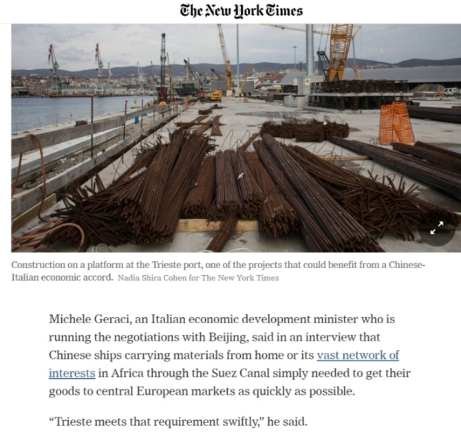 《纽约时报》3月18日报道称,现在,由于中国的出现,的里雅斯特似乎准备重返世界的中心。