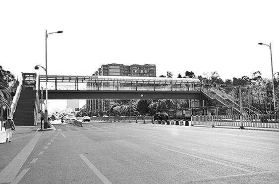 近日,日新路海贝小学节点人行天桥新建工程建成启用。天桥位于海贝小学正门东侧,横跨日新东路。该天桥同步设置自行车过街设施,串联盘龙江慢行系统。