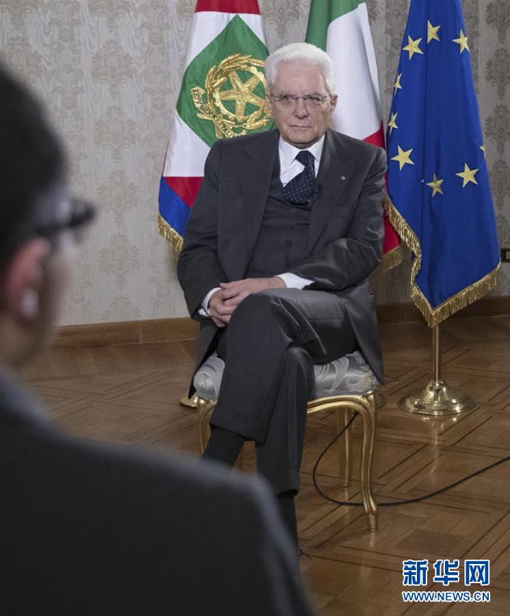 3月19日,意大利总统马塔雷拉接受新华社等中国媒体的联合采访。新华社发(意大利总统府供图)