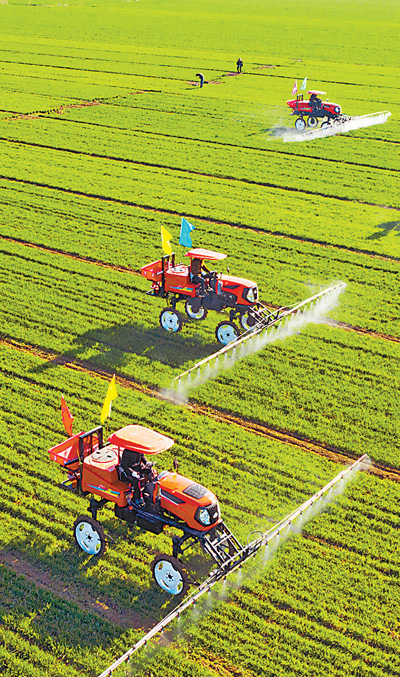 春分已来,春锄扑扑,万顷田畴从南到北正在铺展绿色生产方式。在湖北省襄阳市何岗村的小麦万亩示范方田头,市农科院国家小麦体系实验站站长凌冬正忙着指导农业工人用无人机播撒肥药一体化喷雾剂。忙碌的他面带笑意:“水肥药一体化喷洒,不仅能提高春耕生产效率,还能大大降低单位面积化肥农药投入品的使用!”