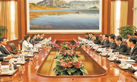 3月22日下午,省委书记陈豪与越共安沛省委书记范氏清茶一行在昆明举行工作会谈,并共同见证两省签署友好合作备忘录。
