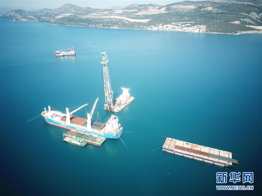 这是2019年3月22日航拍的克罗地亚佩列沙茨跨海大桥施工现场。今年1月,克罗地亚总理普连科维奇视察由中企承建的该项目工地时,对中国企业的施工进度表示赞赏,并指出佩列沙茨大桥意义重大,体现克中两国良好合作关系。 5年多来,“一带一路”倡议在欧亚大陆落地生根,成为中欧战略合作新的增长点,也成为进一步拉近中欧关系、实现互惠共赢的重要纽带。新华社记者高磊/摄