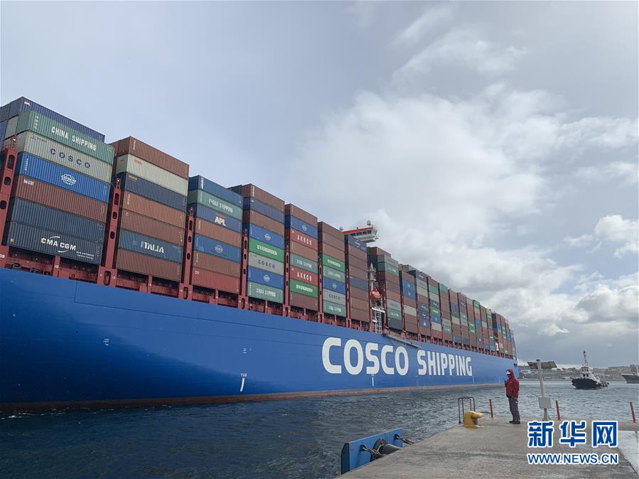这是2019年2月15日在希腊比雷埃夫斯港拍摄的“中远海运双鱼座”轮进港。5年多来,“一带一路”倡议在欧亚大陆落地生根,成为中欧战略合作新的增长点,也成为进一步拉近中欧关系、实现互惠共赢的重要纽带。新华社记者于帅帅/摄