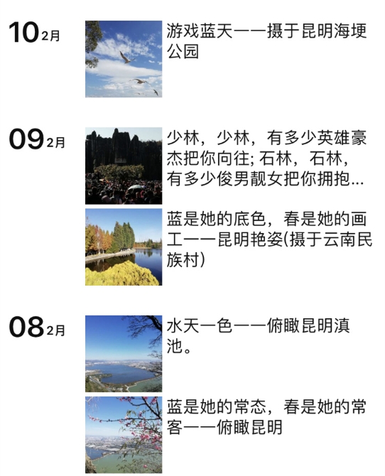 李义明十分热爱旅游,退休后去过国内20余个城市。2019年春节假期,李义明和老伴报了旅行团来到昆明。李义明回忆说,“大年初四去了西山、滇池,初五是石林,初六到了云南民族村。短短4天,春城昆明的美给我留下了深刻的印象”,时隔两月,李义明说起昆明之旅依旧激动。