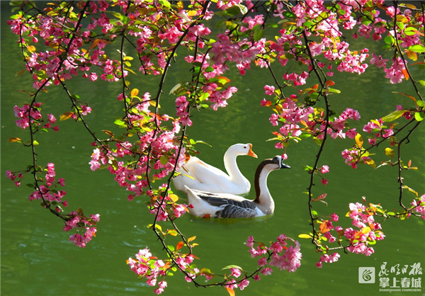 在昆明,“天气常如二三月,花枝不断四时春。”大自然对昆明情有独钟,当昆明从远古走来时,造物主早已把她放置在植物王国的怀抱,让她领受着花花世界的丰富色彩,不论雨晴浓淡,总是那么妩媚迷人,春也就成了他的的常客。
