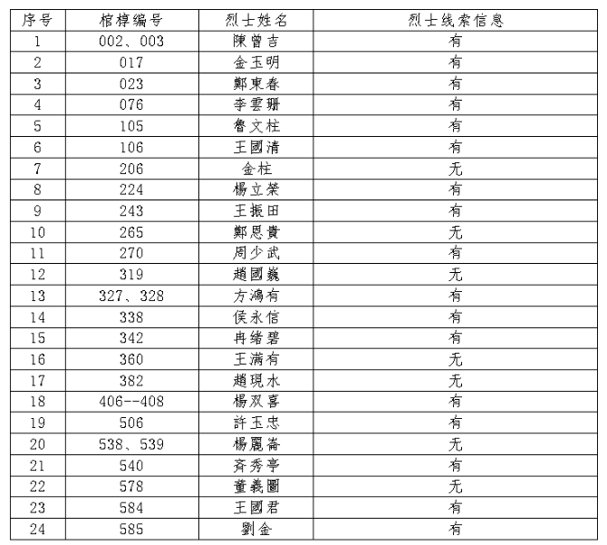烈士信息线索: