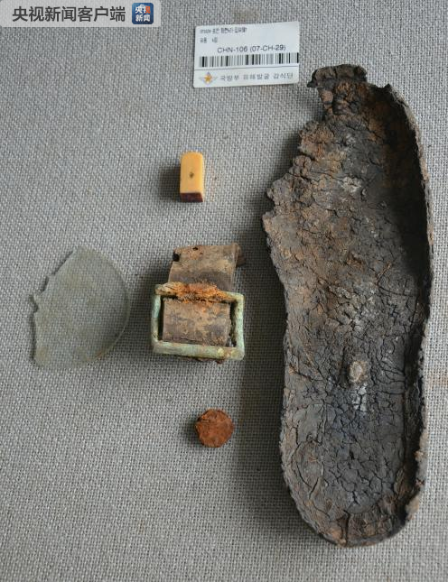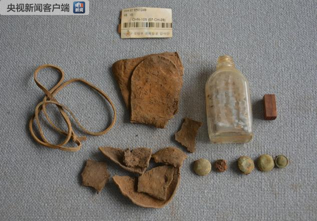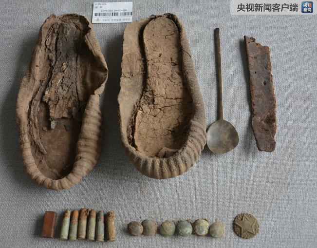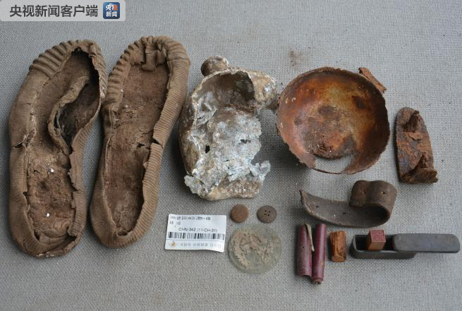 其他遗物:鞋底2只、水壶1个、铁碗1个、纽扣2个、钢笔1支、圆形玻璃片1个、不明物体1个。