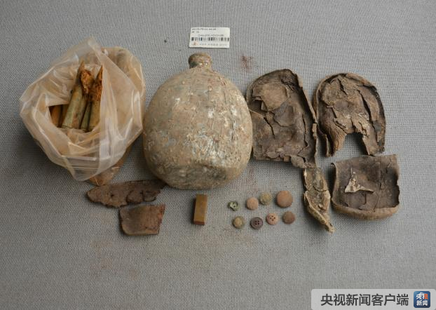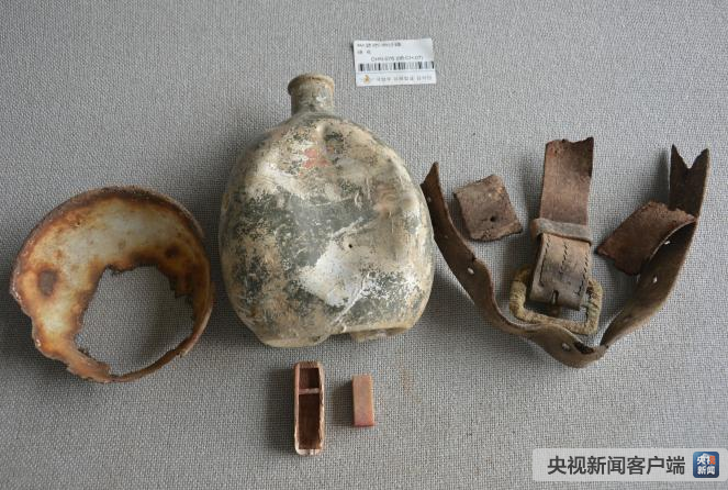 其他遗物:水壶1个、子弹1袋、纽扣8个、鞋底碎片3块、皮带碎片。