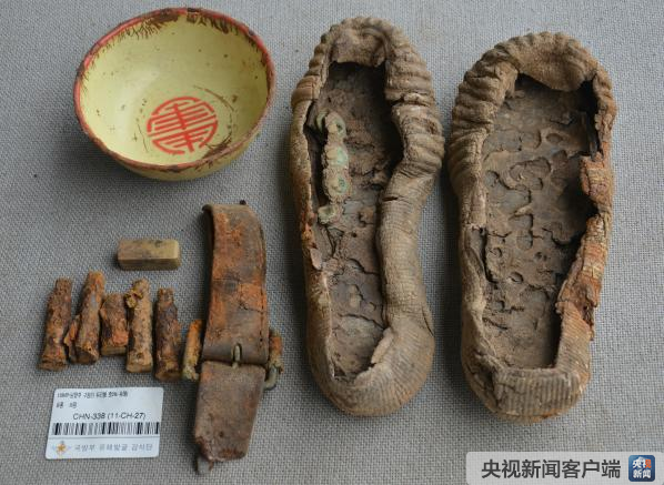 其他遗物:鞋底4只、破损弹壳13个、铁碗1个。