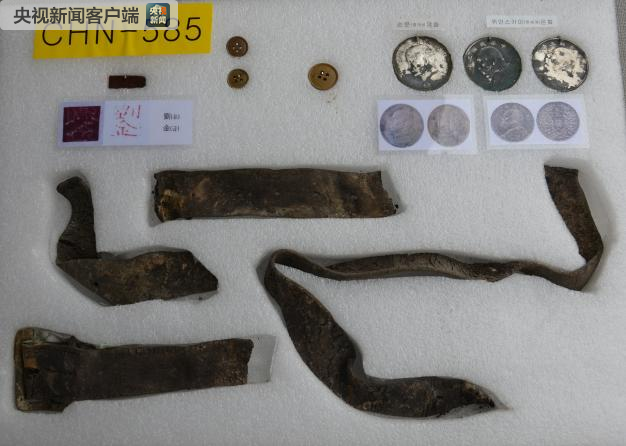 其他遗物:银元3个、皮带碎片、纽扣3个。