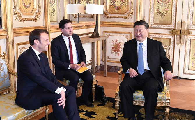 法国是第一个同新中国正式建交的西方大国,今年正逢中法建交55周年。习近平主席向马克龙总统、菲利普总理等法方领导人强调,法国是最早同中国建立战略伙伴关系和开展战略对话、最早同中国开展民用核能合作的国家。中法关系要沿着正确道路走下去,政治互信是关键,务实合作是动力,国民感情是基础。双方一致同意要打造更加坚实、稳固、富有活力的中法全面战略伙伴关系,继续探索独立自主、相互理解、高瞻远瞩、互利共赢的大国相处之道。双方发表关于共同维护多边主义、完善全球治理的联合声明,针对当前国际社会面临的挑战发出一致声音。