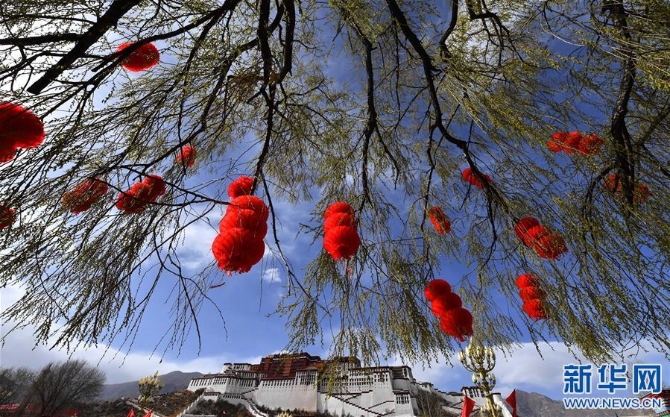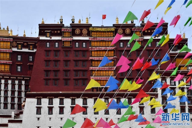 3月27日,拉萨布达拉宫一派节日气氛。新华社记者 觉果 摄
