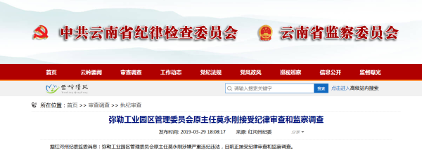 6686体育讯 据红河州纪委监委消息:弥勒工业园区管理委员会原主任莫永刚涉嫌严重违纪违法,目前正接受纪律审查和监察调查。