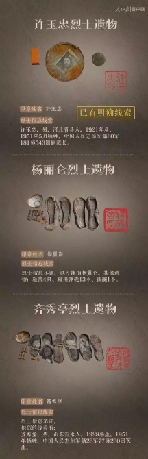 2014年以来,先后有五批589位在韩志愿军烈士遗骸回到祖国怀抱。退役军人事务部从这些烈士的上千件遗物中,发现了姓名文字图案清晰可见的24枚印章。近日与人民日报新媒体等共同发起#寻找英雄#媒体行动,向全社会征集这24位烈士亲属线索。3月29日,人民日报客户端、法人微博、微信公号同时发布稿件《当年,他们为我们牺牲;今天,请为他们做一件事》,向社会介绍“寻找英雄”活动,并公布24位烈士的基本情况和遗物信息。