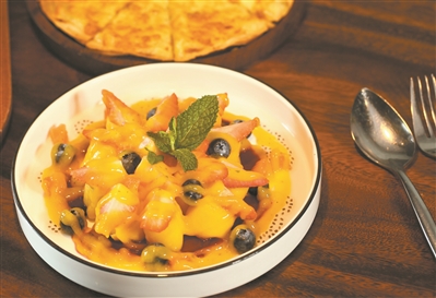 在这儿,若是不想吃得过于复杂,一份“熹素能量”再配一碗汤足矣。所谓能量,就是一份富含营养的米饭,里头囊括了黎麦、青豆、提子干、腰果碎、甜豆粒、红萝卜等,米饭用的是五常大米,所有食材与米饭一起蒸,加上黄咖喱制作的泰国咖喱汁,最独特之处在于加入了滑而香口的南瓜。这个咖喱汁是经过总厨特别研发的素版咖喱汁。(广州日报 记者曾繁莹