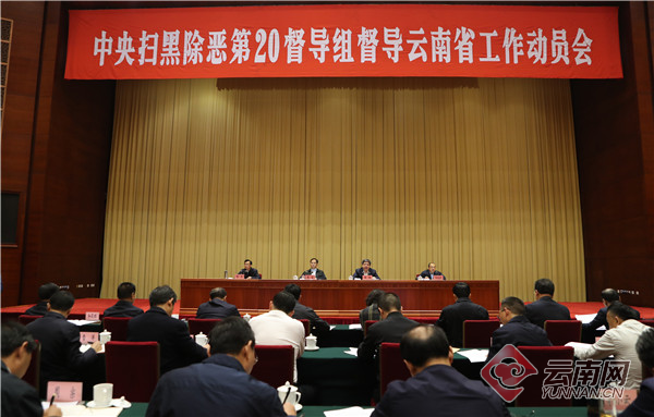 4月1日,中央扫黑除恶第20督导组督导云南省工作动员会在昆明召开,中央扫黑除恶第20督导组组长韩勇、副组长张力就做好督导工作分别作了讲话,云南省委书记陈豪作了动员讲话,会议由云南省省长阮成发主持。