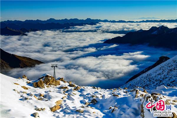 你要是觉得山下积雪还不够厚,请乘坐全球海拔最高的客运索道,瞬移到海拔4860米的雪山之巅吧。这里齐膝厚的积雪,任你怎么堆雪人、打雪仗,都没问题。