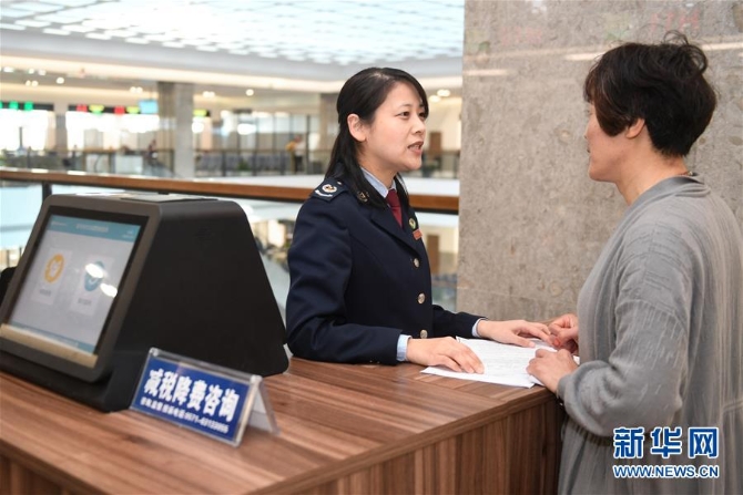 4月1日,国家税务总局杭州市富阳区税务局工作人员为纳税人提供减税降费政策咨询服务。该局已在办税服务场所设立减税降费咨询、办理服务专区。 当日,浙江省税务部门启动2019年税收宣传月相关活动,将推进减税降费与优化税收营商环境作为重点工作,推进增值税改革等税收优惠政策落地。 2019年4月是我国第28个税收宣传月,主题为“落实减税降费,促进经济高质量发展”。 新华社记者黄宗治/摄
