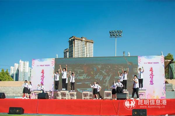 在学校足球场,昆一中西山学校的全体师生为前来参加开放日活动的家长和孩子们献上了一场青春逼人、活力无限的节目艺术展演。学校管乐团、特色班、合唱团轮番上场,乐队合奏、舞蹈、课本剧等各种艺术形式,被同学们搬上舞台,他们热情、投入、专业的表演让现场掌声不断。