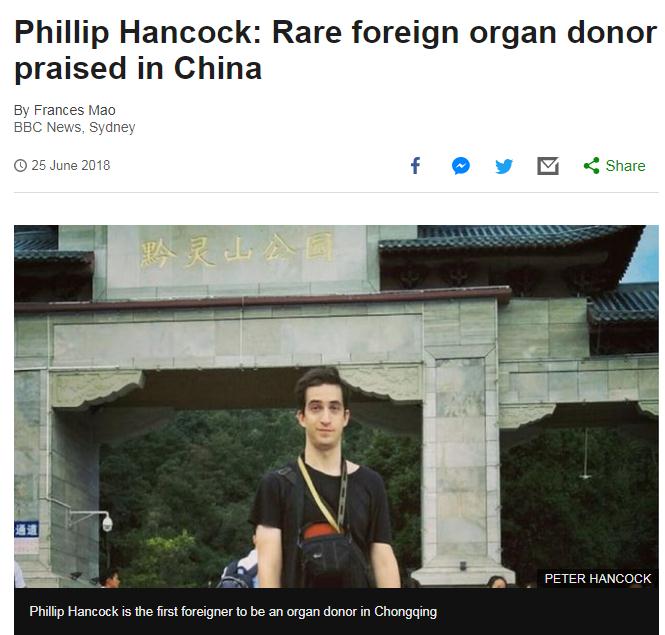 菲利普的感人事迹还引起了英国广播公司(BBC)等其他国家媒体的关注。BBC报道称,来自澳大利亚的菲利浦在中国重庆因糖尿病并发症去世,家人按照遗愿捐出他的多个器官。他的这一举动改变了五个人的命运,人们将他称为“英雄”和“天使”。