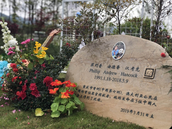 3月31日,生命如花•2019全国人体器官捐献缅怀纪念暨宣传普及活动在重庆这座纪念园举行。纪念园一角,菲利普的墓碑刚刚落成。