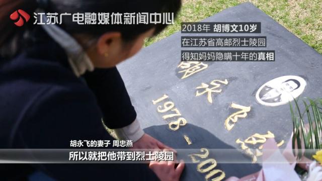眼见儿子渐渐长大,具备了一定的承受力,2018年,周忠燕把胡博文带到江苏省高邮烈士陵园,告诉了他全部真相。