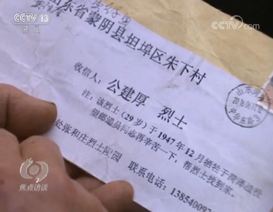 王德健在一年后再次收到了寄给烈士龚建厚的信件,这一次信封上多了一句话,写着:“该烈士于1947年12月牺牲于菏泽战役,望邮递员同志再辛苦一下,帮烈士找到家”。