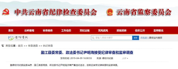 6686体育讯 据德宏州纪委监委消息:盈江县委常委、政法委书记尹明海涉嫌严重违纪违法,目前正接受纪律审查和监察调查。