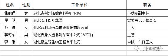 湖北五一劳动奖章候选对象(荆州)