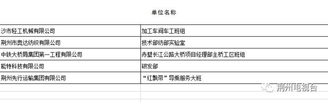湖北省工人先锋号候选对象(荆州)