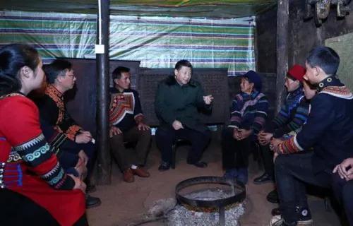 之后,在同村民代表、驻村扶贫工作队员座谈时,习近平饱含深情地说,我一直牵挂着彝族群众,很高兴来到这里,看到大家日子一天天好起来,心里十分欣慰。习近平指出,我们搞社会主义,就是要让各族人民都过上幸福美好的生活。全面建成小康社会最艰巨最繁重的任务在贫困地区,特别是在深度贫困地区,无论这块硬骨头有多硬都必须啃下,无论这场攻坚战有多难打都必须打赢,全面小康路上不能忘记每一个民族、每一个家庭。