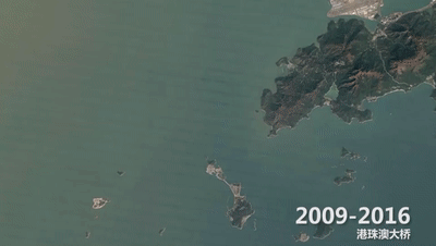 世界最长跨海大桥——港珠澳大桥联通天堑。让我们在卫星图上,亲眼见证其从无到有,正是劳动人民书写了中国工程建设的宏伟篇章。