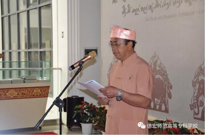 4月12日上午,在中国•德宏2019国际泼水狂欢节欢乐举行之际,傣族宗教文化暨傣学研究成果展在德宏师范高等专科学校隆重举行。德宏州政协副主席管国照、德宏州傣协会会长刀晓瑞、德宏师专党委副书记、校长邱勇、中央民族大学历史文化学院教授、博士生导师苍铭、江应樑傣族博物馆馆长江晓林等领导出席仪式。德宏师专副校长杨明宏主持了仪式。来自世界各地的来宾们欢聚在德宏师专共襄盛举。