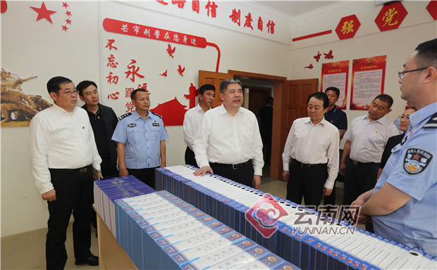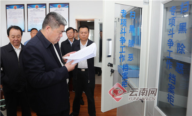 4月12日,中央扫黑除恶第20督导组组长韩勇带队在普洱市下沉开展专项督导工作时,在思茅区公安局城北派出所督导扫黑除恶工作,了解专项斗争提升群众安全感、满意度情况。记者 杨峥/摄