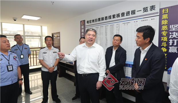 打赢扫黑除恶专项斗争关系到云南边疆稳固民族团结大局。督导组前往瑞丽口岸察看出入境管理情况,直抵姐告乡小广弄村边境管控点看望执勤干警,走进姐告公安分局跨境涉黑涉恶案件专班,听取案件侦办进展,要求保持缉私打非、禁毒禁赌、反恐防爆高压态势,打出声威扩大战果。城乡社区是落实扫黑除恶部署的“最后一公里”。