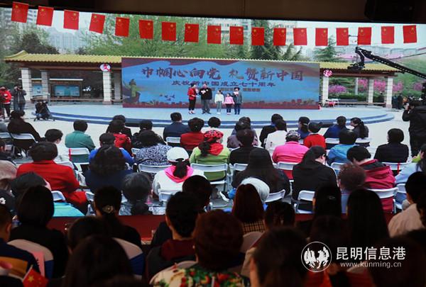 当天,官渡区组织和平路社区老年大学2个合唱班妇女学员开展爱国歌曲大合唱并邀请社区“大党委”成员单位省邮政公司进行歌伴舞表演,让巾帼好声音传起来,社区艺术团也用歌舞来歌颂祖国,让歌唱祖国成为最响亮的时代音符。