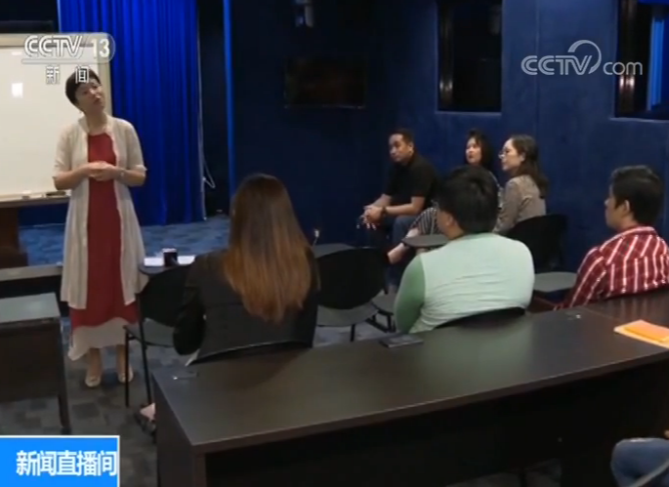 这里是菲律宾总统府的新闻发布室,但现在,这里成为了中文课堂。来自菲律宾新闻部的近20名员工开始在这里学习中文。据介绍,希望学习中文是新闻部员工主动提出的。