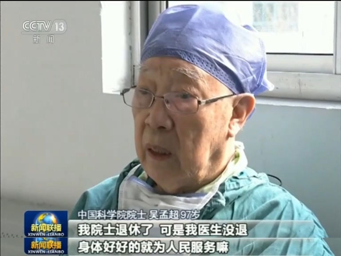 今天的《爱国情 奋斗者》要为大家介绍一位从医70年的医生。他把手术台当作报效国家的平台,开创了中国的肝胆外科,创造了世界医学领域的无数个第一,他就是国家最高科技奖获得者、中国科学院院士――吴孟超。