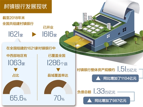 自2007年我国第一家村镇银行开业以来,截至2018年末,全国共组建村镇银行1621家。银行业协会副秘书长张芳称,从全国村镇银行分布看,中西部地区有1063家,占比65.6%;村镇银行已覆盖全国1286个县,县域覆盖率达70%。村镇银行整体资产规模约1.51万亿元,负债总额1.33万亿元。存款余额1.18万亿元,贷款余额0.94万亿元。